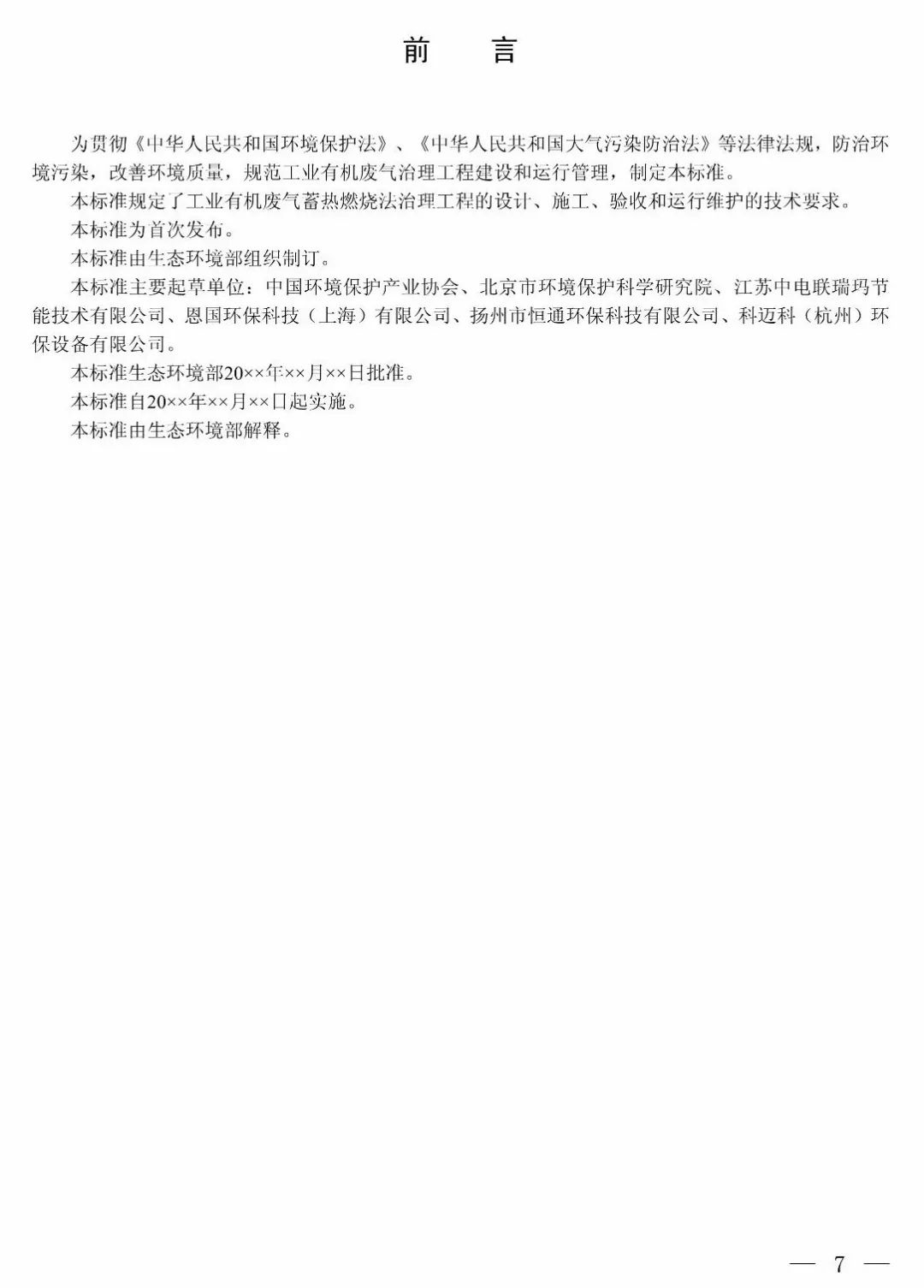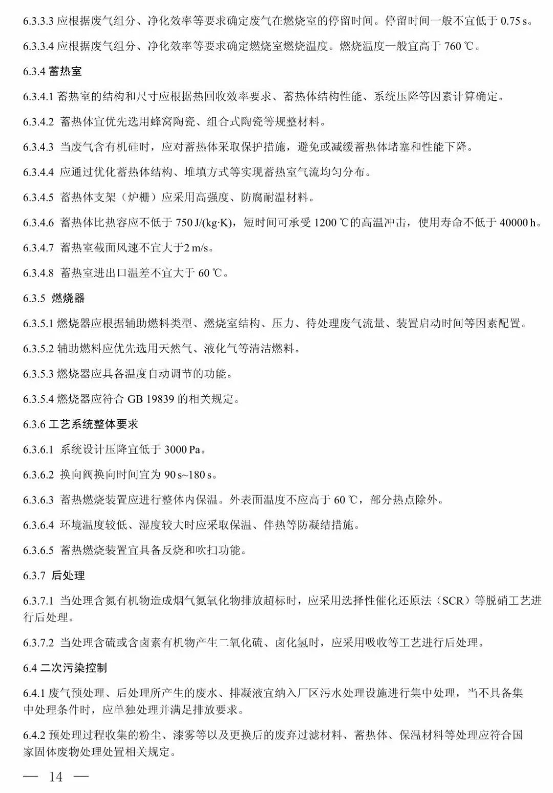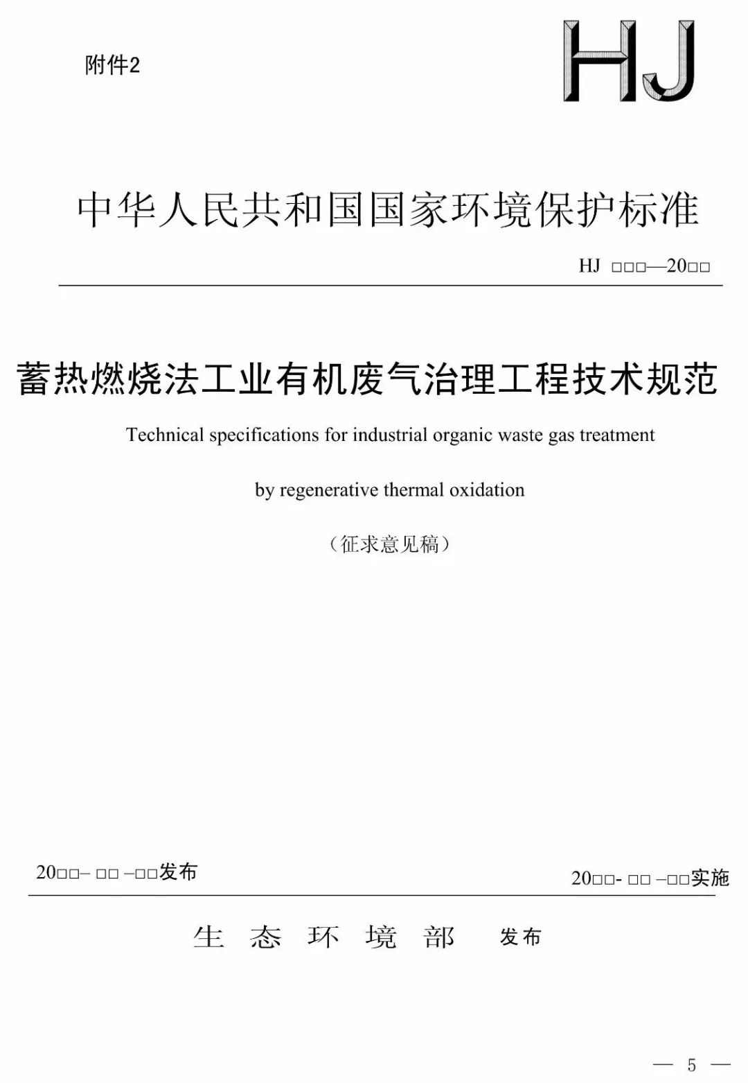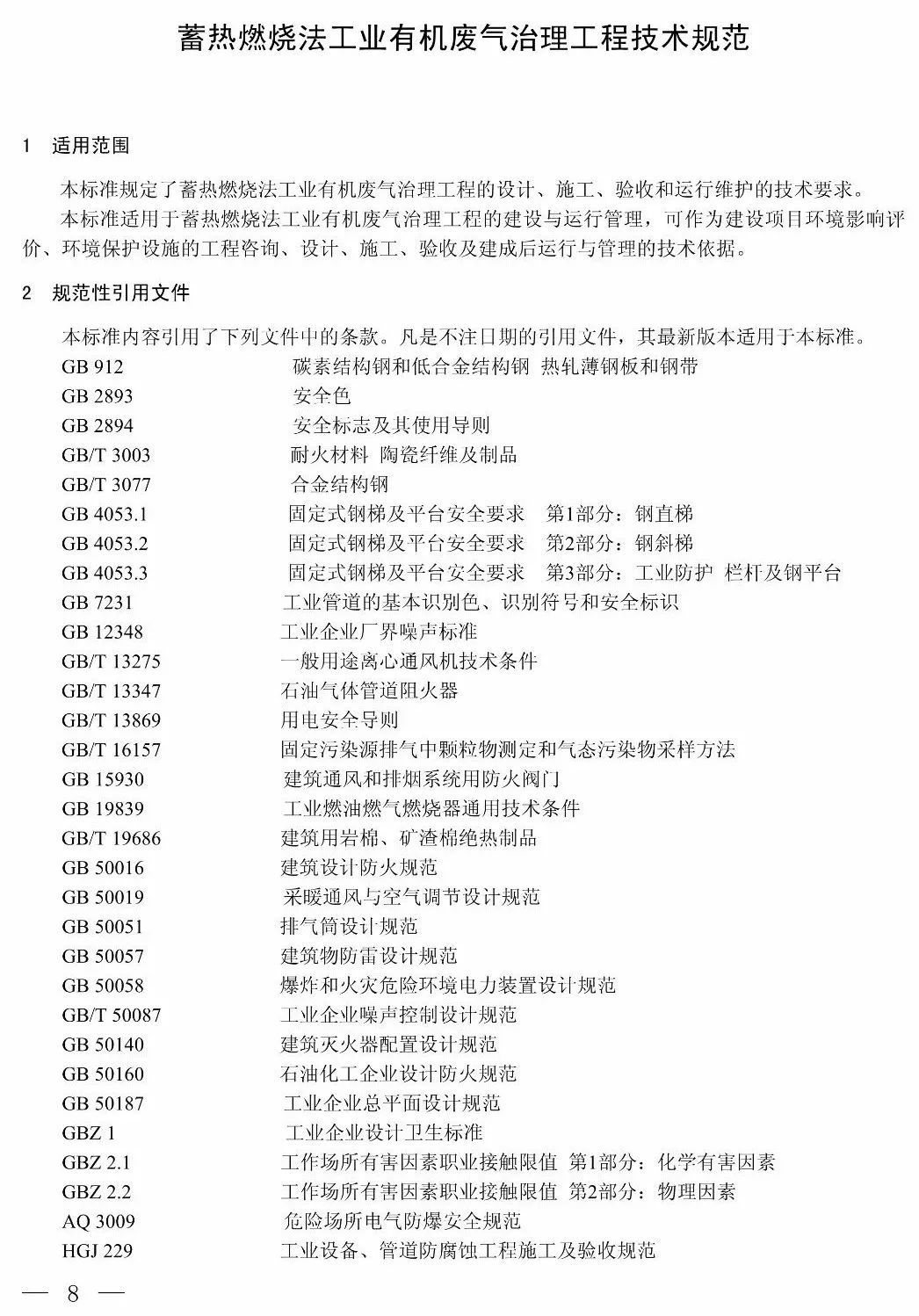 2.蓄热燃烧法工业有机废气治理工程技术规范(征求意见稿)