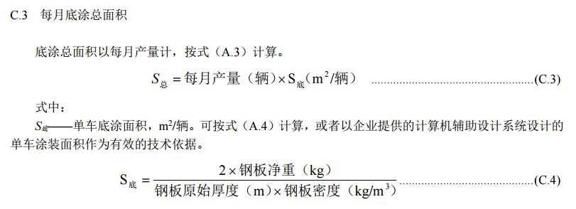 单位涂装面积挥发性有机物排放量是以每月涂装工序所有排放的挥发性有机物总量(含逸散性排放量)除以底涂总面积,按式(A.1)计算。