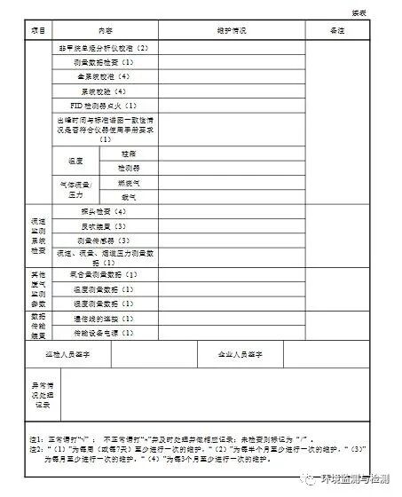 11.3定期维护维护频次按照本标准附表E.1进行,定期维护应做到:a)使用氢气钢瓶时,至少每周巡检一次钢瓶气的压力并记录,有条件的应做到一用一备;b)使用氢气发生器时,至少每周检查一次氢气发生器变色硅胶的变色 情况,超过2/3变色应及时更换变色硅胶;c)使用氢气发生器时,应按其说明书规定,定期检查氢气压力、氢气发生器电解液等,根据使用情况及时更换,定期添加纯净水;d)至少每周检查一次除烃装置温度是否保持在350°C以上;e)至少每周检查一次出峰时间与标准谱图一致性情况是否符合仪器使用手册要求;f)至少每月检查一次燃烧气连接管路的气密性,NMHC-CEMS的过滤器、采样管路的结灰情况,若发现数据异常应及时维护;g)至少每半年检查一次零气发生器中的活性炭和NO氧化剂,根据使用情况进行更换;h)使用催化氧化装置的NMHC-CEMS至少每年用丙烷标气检验一次转化效率,保证丙烷转化效率在95%以上,否则应更换催化氧化装置;i)更换主要部件如色谱柱、定量环时需对分析仪进行多点校准,并记录校准数据和过程,校准数据符合本标准表1要求且稳定后才可投入运行;j)定期维护记录按本标准附录E中表格形式记录。
