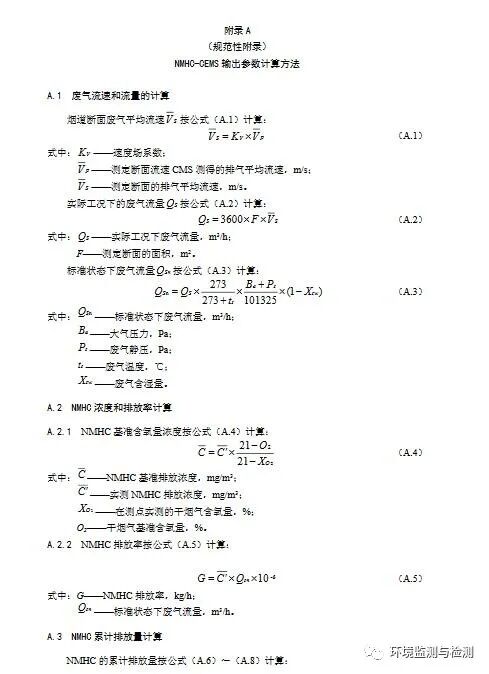 NMHC-CEMS应当实现测量废气中非甲烷总烃浓度、废气参数(温度、压力、流速或流量、湿度以及含氧量等),同时计算废气中污染物排放速率和排放量,显示(可支持打印)和记录各种数据和参数,形成相关图表,并通过数据、图文等方式传输至管理部门等功能。输出参数计算应满足本标准附录A要求。