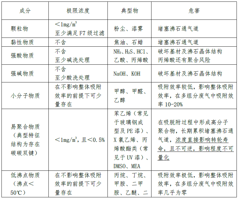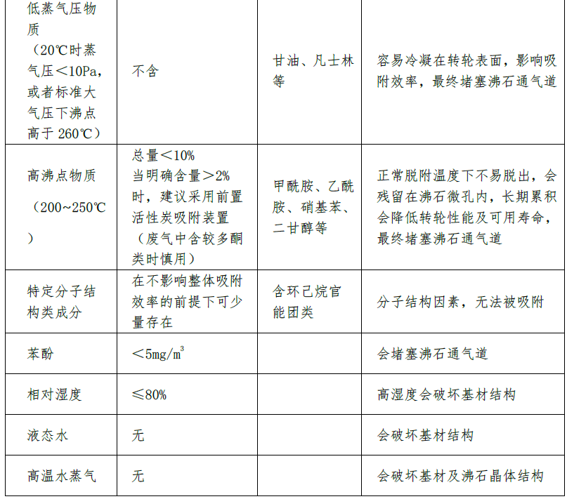转轮按设定的速度转动,实现了废气的循环吸附脱附。然而对于废气成分复杂,含有高沸点的有机物,往往180℃-200℃的温度不足以将有机物脱附出来,这些高沸点有机物残留在沸石的孔隙中,随着时间的推移,残留的累积量越来越多,可用于吸脱附的孔隙越来越少,最终导致转轮出口有机物浓度偏高,排放不达标现象。因此,必须采取一定的措施,将高沸点组分从沸石中脱附出来,恢复转轮的吸附容量。