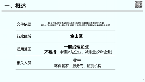 今年是此项工作的收官之年。为科学、准确评估工作成效,市生态环境局组织开展VOCs减排量核算核查工作,并明确了重点企业的相关要求。在市生态环境局的指导下,金山区生态环境局研究制定了全市首个区级层面的一般企业核算技术说明,明确了核算要求和方法。