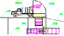⑴.用输送带方式向压缩腔中投料(如图五),这种方式倾倒垃圾比较方便灵活,倾倒垃圾的地坑可以离压缩机较远,相对来讲占地面积较大,但投资要小于二层楼的结构形式,适用于中小型压缩机,在地形本身就具备高低差的条件下,使用这种方式也较为合理。