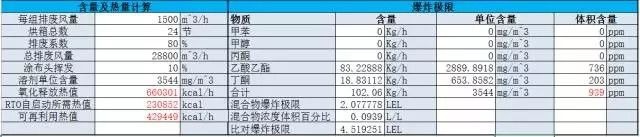 在现场实际测试上墨量,废气流量,废气温度后,车速,幅宽参数,输入西安昱昌环境计算得出以下结果,废气浓度为0.5g/m3,达不到自启动条件,需要额外用天然气7.6万大卡热值。用ESO浓缩后,可无功运行,还可以外供热量42.9万大卡热值。
