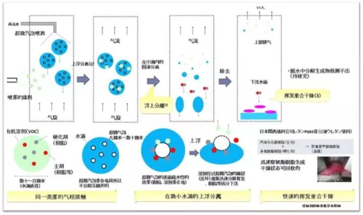 NBS 全名纳米微气泡处理系统,它的原理是利用纳米微气泡进行处理。纳米微气泡就是将气泡纳米化,纳米微气泡破裂时会产生负离子,具有强氧化性。利用纳米微气泡处理有机气体,将气体分解成二氧化碳和水。再配合纳米离子水,能够进行更高端的处理,例如电厂废气处理等。其在处理 VOC 的过程中主要会产生以下反应: