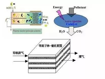原理:等离子体场富集大量活性物种,如离子、电子、激发态的原子、分子及自由基等;活性物种将污染物分子离解小分子物质。