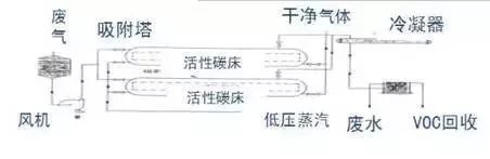 原理:利用吸附剂与污染物质 (VOCs) 进行物理结合或化学反应并将污染成分去除