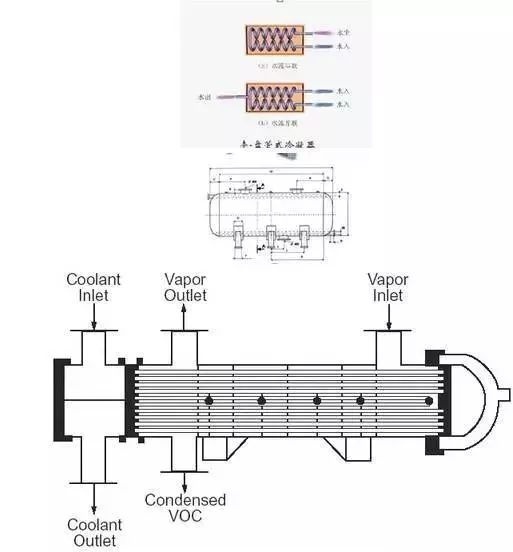 原理:冷凝将废气降温至 VOCs 成份之露点以下,使之凝结为液态后加以回收之方法。