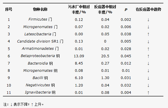 表4 污水厂与反应器门、纲水平上物种相对丰度的差异