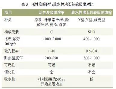 活性炭吸附比表面积大,但其材料耐热性差、可燃,长时间运转漆雾黏附于活性炭上易发生火灾事故,造成活性炭表面介质受损。另外,涂装废气湿度较高影响活性炭对VOC 的吸附能力,因此疏水性沸石转轮吸附浓缩相对安全,吸附能力可靠。