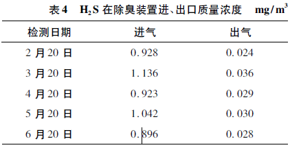 该臭气处理装置稳定运行后,对厂区的空气进行了检测,并与运行前数据进行了比较,结果如表8所示。