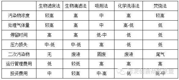 2) 生物处理工艺根据微生物的固定状态及液体的流动状态分为生物过滤、生物滴滤、生物洗涤三种。其中生物洗涤法适用于高浓度、高含尘量、高温度、高水溶性的废气(如污泥堆肥、污泥太阳能干化、污泥余热干化等臭气),适合于与污水处理设施临边联建。此方法停留时间短、投资少、占地少、运行费用低。